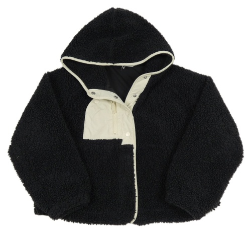 Čierno-smotanová huňatá podšitá crop bunda s kapucňou M&S