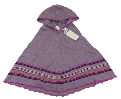 Nové - Fialové vlnené pončo s pruhmi a kapucňou