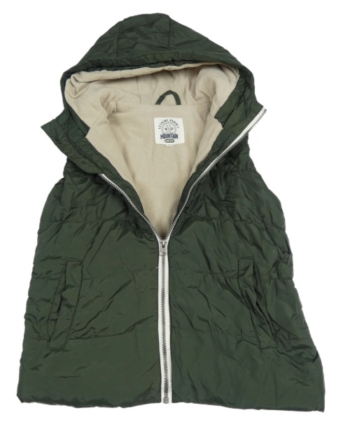 Tmavokhaki prešívaná šušťáková zateplená vesta s kapucňou alive