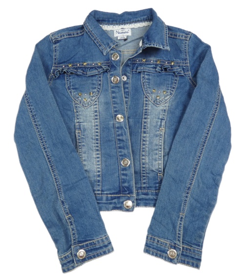 Modrá rifľová crop bunda s hviezdičkami