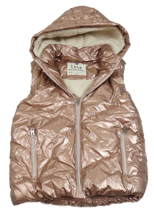 Staroružová metalická prešívaná nepromokavá zateplená vesta s kapucňou F&F