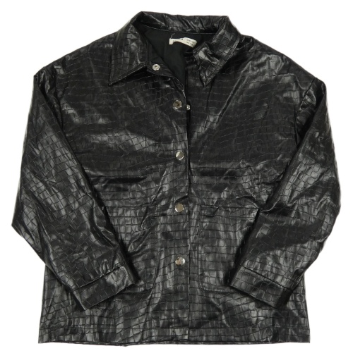 Čierna vzorovaná koženková košeľová bunda Shein