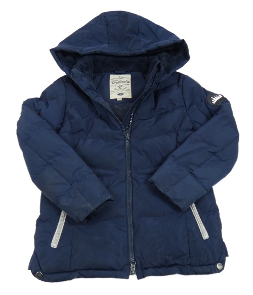 Tmavomodrá šušťáková zimná bunda s nášivkou a kapucňou