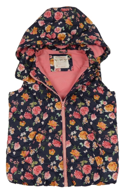 Tmavomodrá kvetovaná šušťáková zateplená vesta s kapucňou LC Waikiki