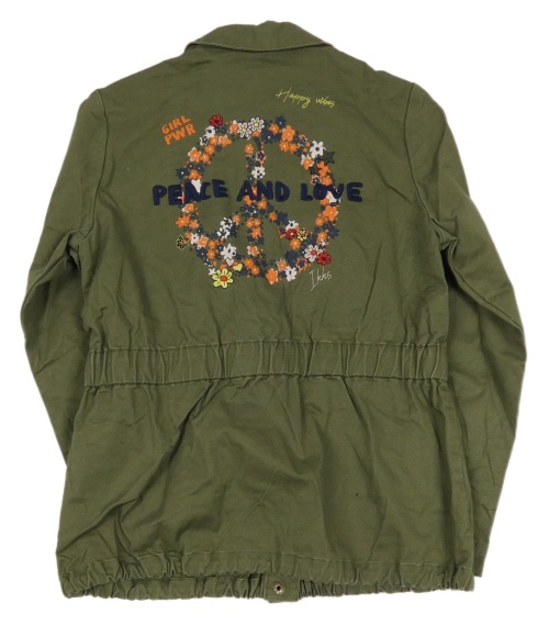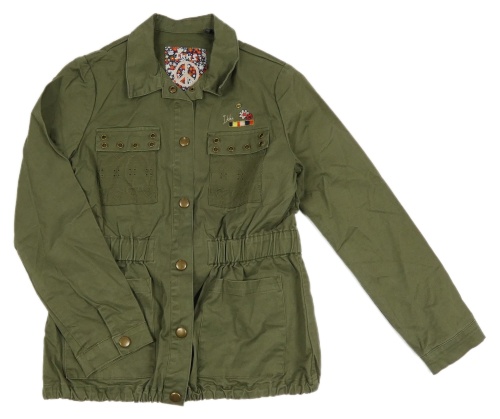 Nové - Khaki plátenná parka s kvetmi a srdiečkami a madeirou a cvokmi IKKS
