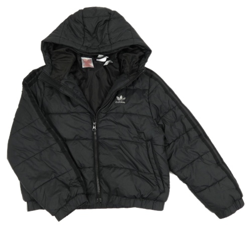 Čierna šušťáková crop zimná bunda s logom a kapucňou Adidas