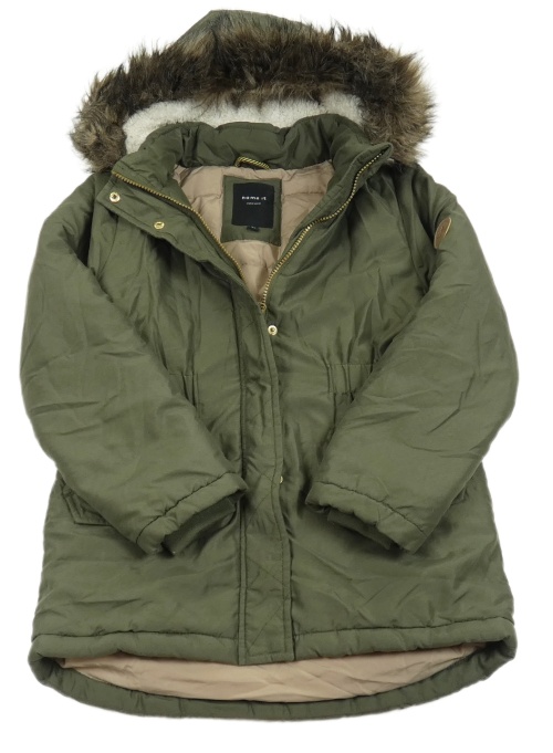 • Khaki šušťáková zimná parka s nášivkou a odopínacíá kapucňou s kožešinou name it.