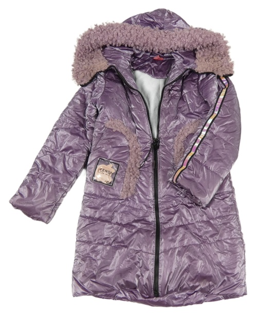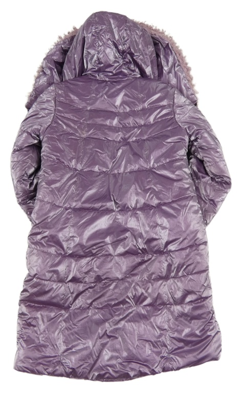 • Fialový metalický prešívaný šušťákový zimný kabát s jablíčkem a pruhmi a kapucňou
