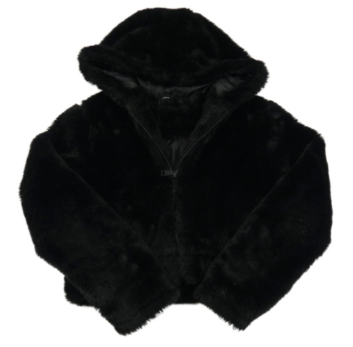 Čierna kožušinová podšitá crop bunda s kapucňou Matalan