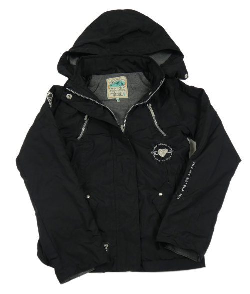 Čierna šušťáková jarná bunda s nápisom a kapucňou