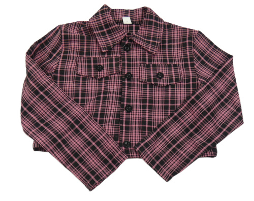 Čierno-ružová kockovaná košeľová crop bunda s nápisom a číslom SHEIN
