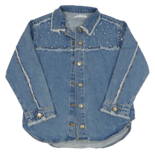 Svetlomodrá rifľová bunda s kamienkami Zara