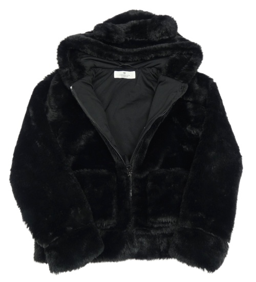 Čierna kožušinová podšitá bunda s kapucňou H&M