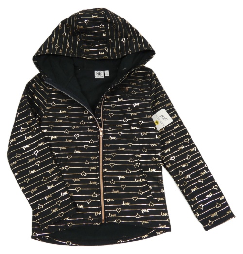 Nové - čierno-zlatá pruhovaná softshellová bunda so srdiečkami a nápismi a kapucňou BODY GLOVE