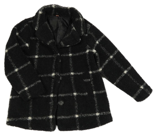Čierny kockovaný huňatý podšitý kabát