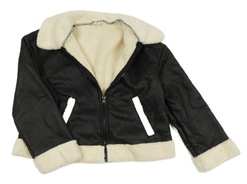 Čierno-smotanová koženkovo/huňatá zateplená crop bunda s golierikom SHEI_N