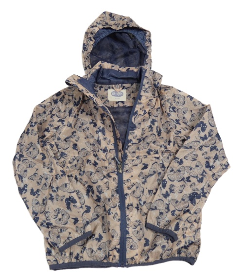 • Pudrovo-tmavomodrá šušťáková jesenná bunda s motýlikmi a ukrývací kapucňou HIP&HOPPS