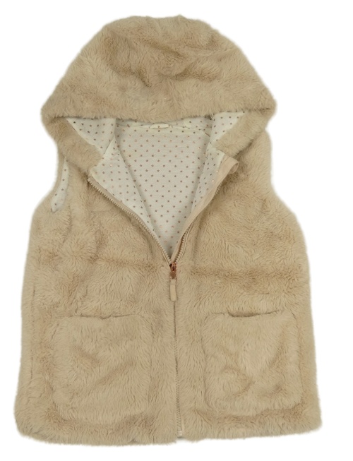 Béžová kožušinová podšitá vesta s kapucňou Nutmeg