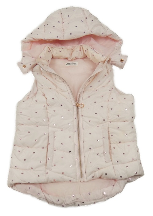 Svetloružová šušťáková zateplená vesta so srdiečkami a kapucňou H&M