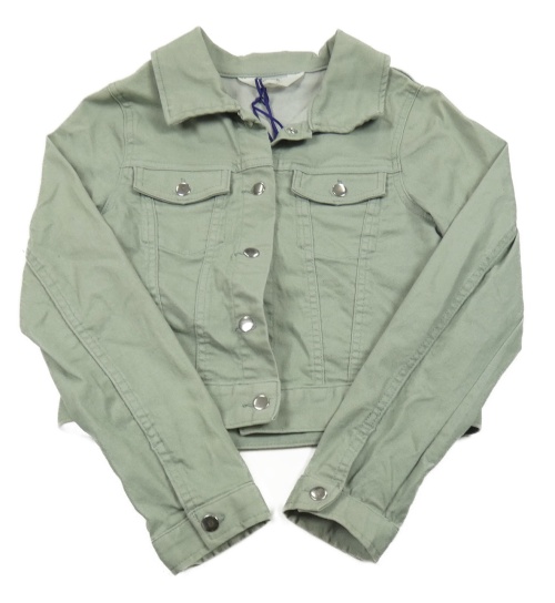 Olivová tepláková rifľová crop bunda s golierikom H&M