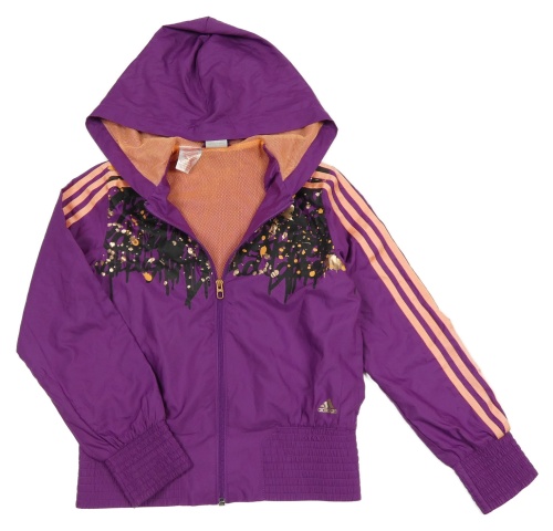 Fialovo-vzorovaná šušťáková športová crop bunda s kapucňou Adidas