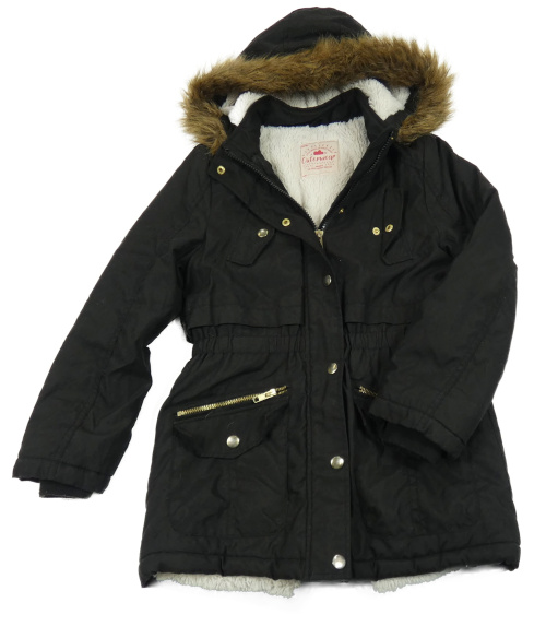 Čierna šušťáková zateplená parka s kapucňou s kožešinou George
