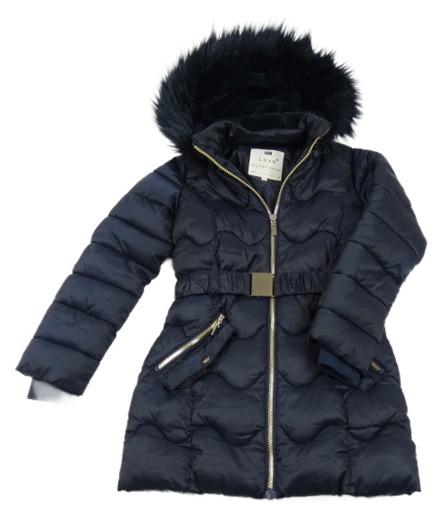 Tmavomodrý šušťákový zimný kabát s opaskom a kapucňou F&F