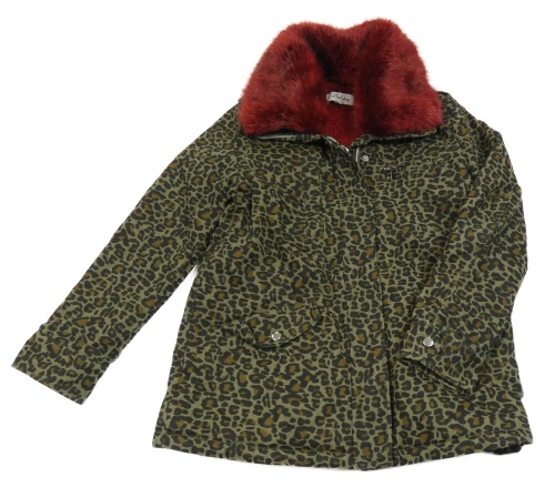 Kaki-čeerná vzorovaná plátenná zateplená bunda s kožešinou a kapucňou