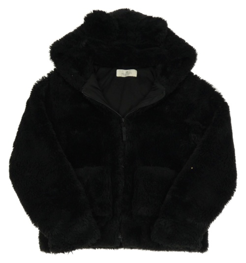 Čierna kožušinová podšitá bunda s kapucňou s uškami H&M