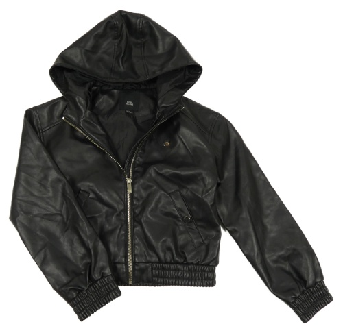 Čierna koženková bunda s kapucňou River Island