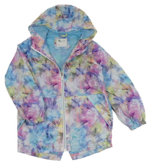 Modro-ružovo-žltá batikovaná šušťáková jarná bunda s kapucňou Tu