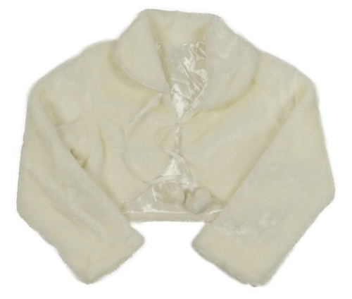 Smotanové kožušinové podšité bolerko s golierikom a bambulkami