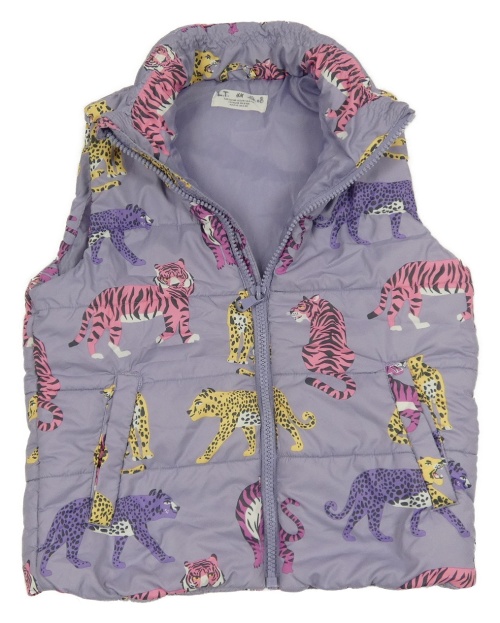 Fialová šušťáková zateplená vesta s farebnymi leopardmi H&M