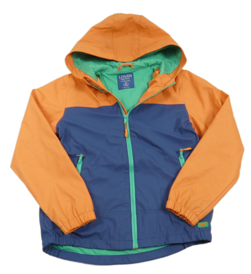 • Tmavomodro-oranžová nepromokavá jarná bunda s kapucňou LOSAN