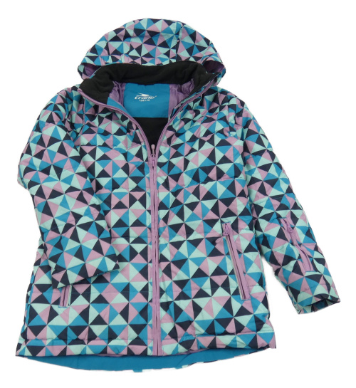 Tyrkysovo-ružová vzorovaná zimná funkčná bunda s kapucňou Crane