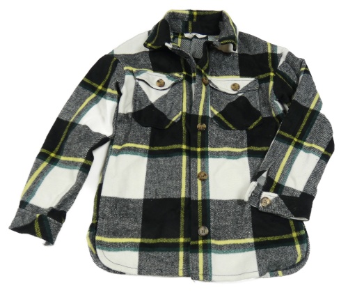 Čierno-bielo-tmavozeleno-žltá kockovaná vlnená košeľová bunda H&M