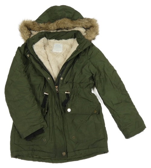 Tmavozelená šušťáková zimná parka s kožešinou a kapucňou Primark