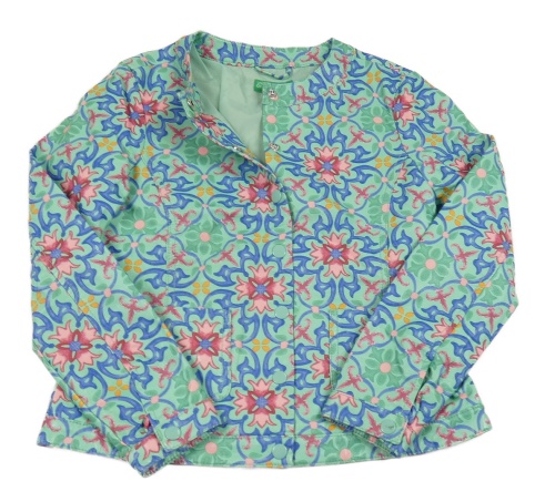 Zeleno-farebná vzorovaná koženková podšitá bunda Benetton