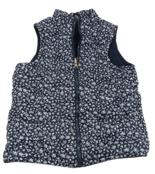 Tmavomodrá šušťáková prešívaná zateplená vesta s kvietkami
