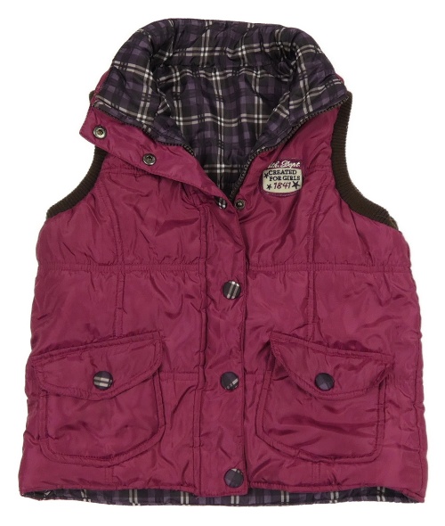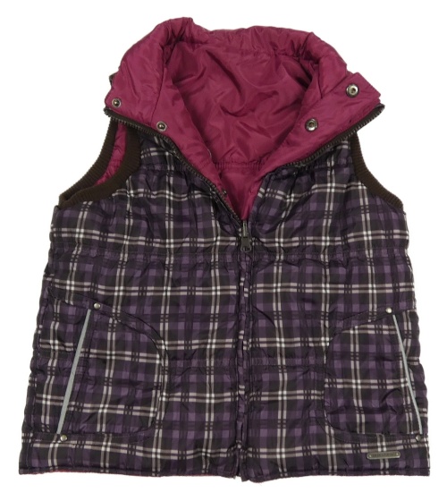 Tmavoružová šušťáková obojstranná zateplená vesta s nápisom
