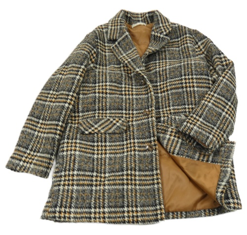 Čierno-hnedý kockovaný úpletový podšitý kabát shein