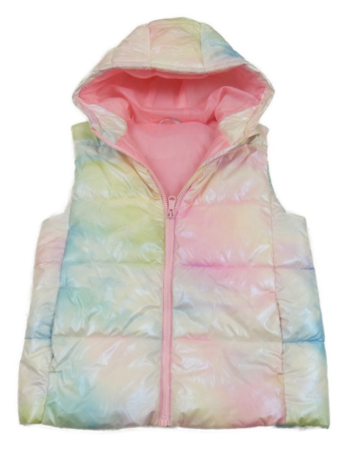 Duhová lesklá šušťáková zateplená vesta s kapucňou Dunnes