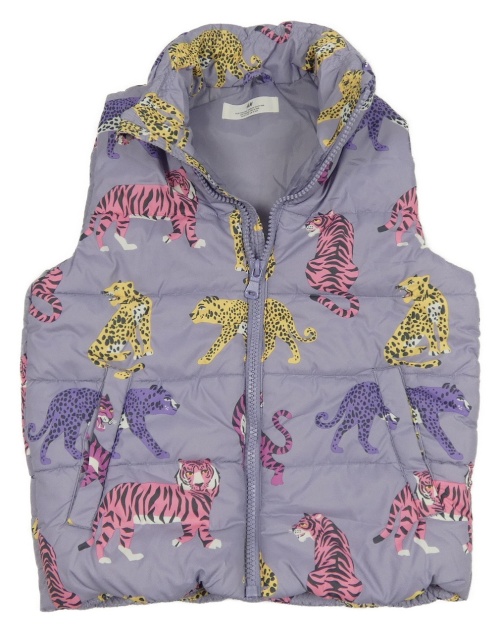 Levandulová šušťáková prešívaná zateplená vesta s šelmami H&M