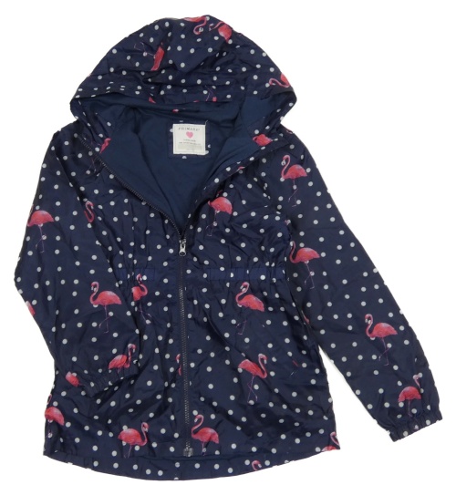 • Tmavomodrá bodkovaná á šušťáková jarná bunda s plameňáky a kapucňou Primark