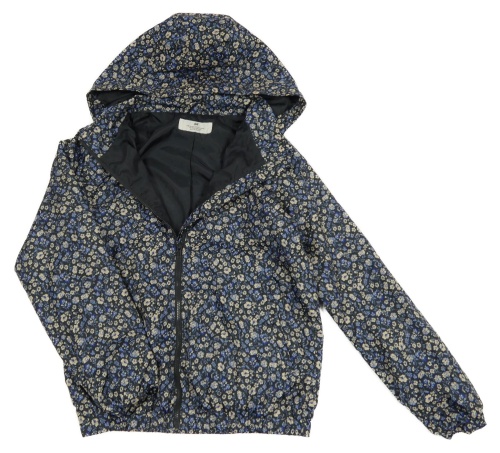 Čierna kvetinová šušťáková jarná bunda s kapucňou H&M