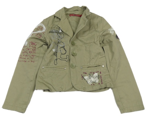 Khaki plátenné crop sako s potlačou