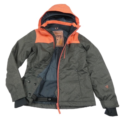 Korálovo-tmavosivá šušťáková lyžiarska bunda s kapucňou