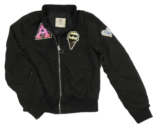 Černý šusťákový podšitý bomber s obrázky z flitrů H&M
