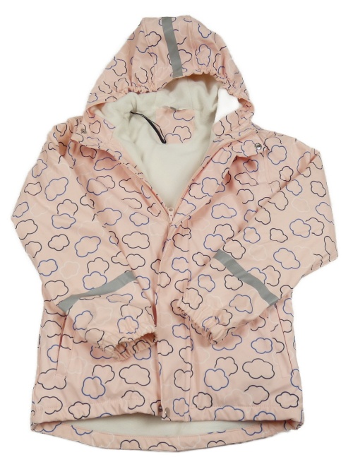 Svetloružová nepromokavá zateplená bunda s mraky a kapucňou