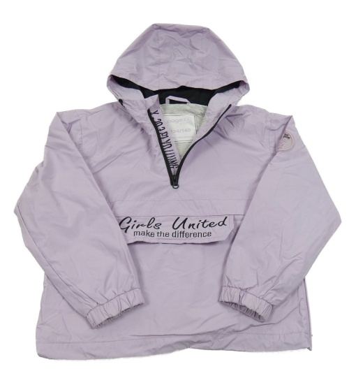 Lila šušťáková jarná bunda s nápisom a kapucňou Pag